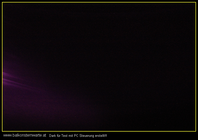 Nach einiger Zeit, ich glaub ich war schon am verzweifeln, da saß ich im Wohnzimmer und spielte mit der Kamera. Ich weis nicht warum ich das gemacht hab, aber jetzt bin ich darüber froh. Und zwar machte ich Aufnahmen mit verschlossener Kamera, so genannte Darks. Als erstes machte ich die ohne Läppi, also mit Blub und per Finger gehalten. Bei solchen Bildern kann ja nichts verwackeln. Die Einstellung war Spiegelvorauslösung ein und Rauschunterdrückung aus, Belichtungszeit 180 sek. bei iso 1600.