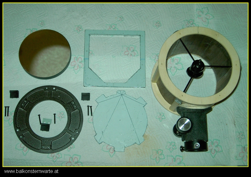 VORWORT: Da bei diesem Teleskopbau nicht immer alles glatt lief, und ich während des Baus einige Rückschläge hatte und dadurch gezwungen war einige (mehrere!!!) Änderungen beim Bau zu treffen, ist nicht alles was im Bericht steht auch aktuell. Der Bericht zeigt aber mal wie die Überlegungen bei der Planung und beim Bau waren. Sollte mehr als ein Dokumentation angesehen werden. Ich hätte auch die Teile löschen oder abändern könnten, machte das aber bewusst nicht, denn so sieht man dass es gar nicht so leicht ist ein so kleines Teleskop zu bauen.