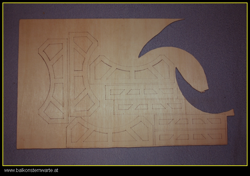 Wie man so was ausschneidet, weis eigentlich fast jeder Hobbybastler und deshalb hab ich auf Bilder vom Ausschneiden verzichtet. Als alle Teile aus der Platte heraußen waren, verschliff ich alle Rundungen und Kanten bis hin zum Bleistiftstrich.